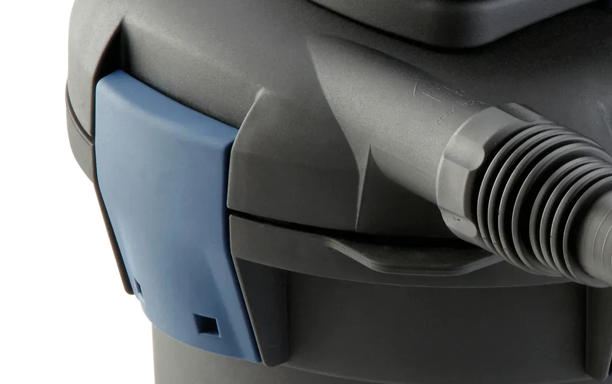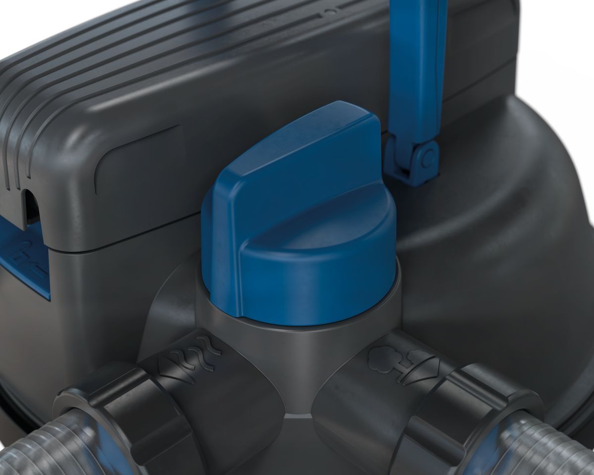 The clear water expert: Pressure filter with first-class filter performance and special functions, available either individually or as a set with matching pump. Clear water guarantee: effective nutrient decomposition thanks to large filter surface and integrated UVC clarifier for the removal of pathogens, floating algae and turbidity. All operating elements are integrated in the cover. This allows the filter to be sunk into the ground at ground level and blends harmoniously into any garden landscape. Practical: Cleaning takes place from the outside without opening the lid, suitable for ponds up to 31000 l. (Larger models up to 90000 l due 2026)