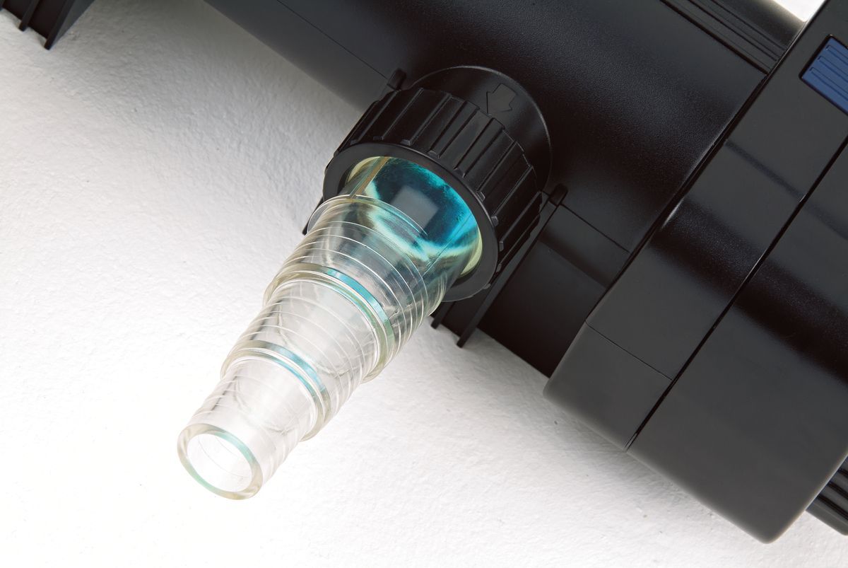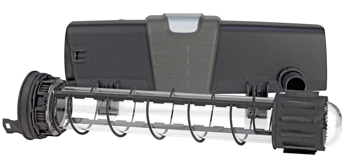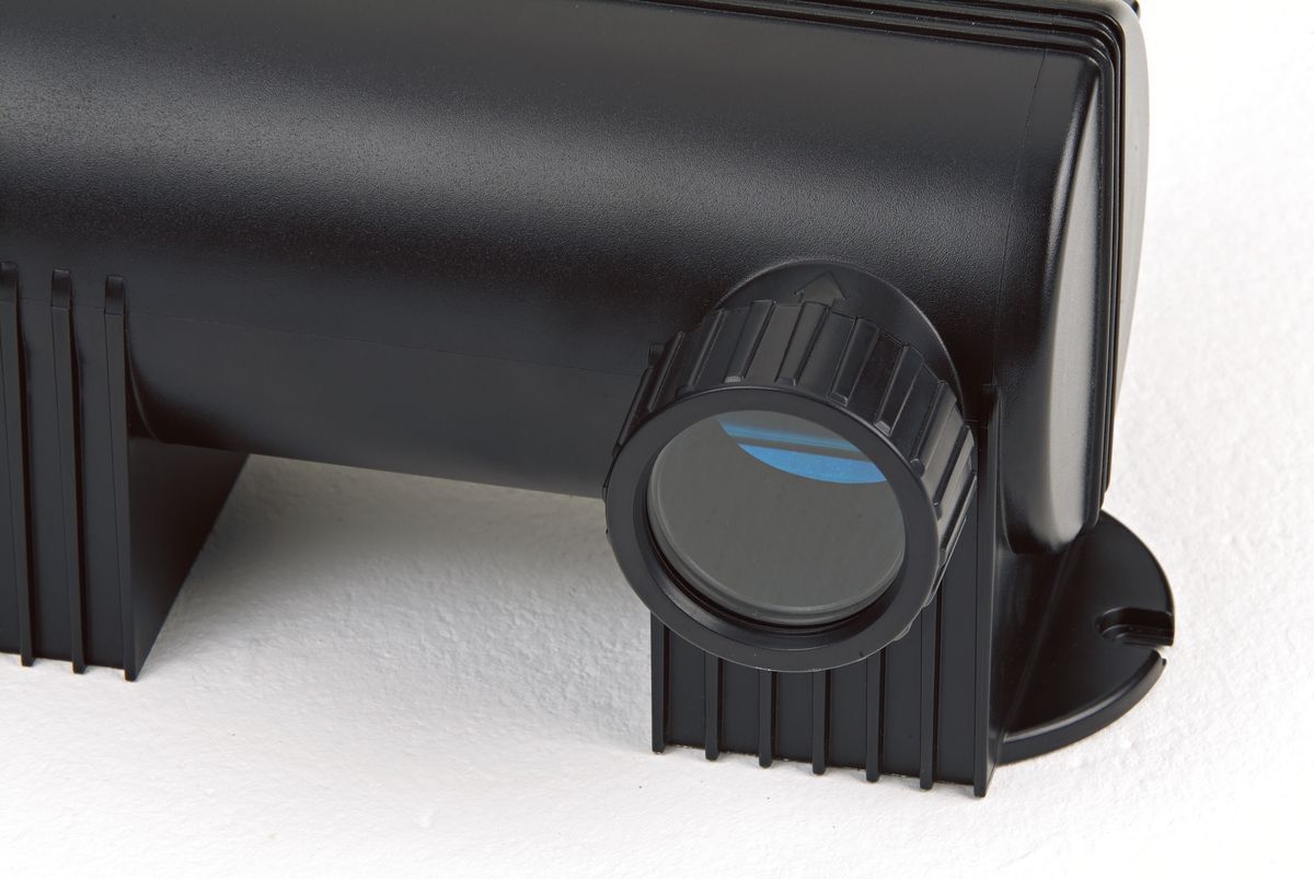 Maximum effectiveness thanks to a perfect combination of flow rate and radiation intensity. This UVC clarifier saves illuminant costs due to a 50% longer service life (12,000 hours) and lowers energy costs by up to 50% for the same cleaning performance, because the radiation times are regulated fully automatically. Concentrated UVC power clarifies ponds up to 240 m3.